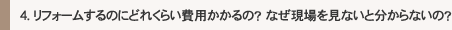 よくあるご質問をいくつかご紹介します。皆様のリフォームのご参考にしてください。皆様からのご質問も受け付けております。こちらのお問い合せフォームをご利用ください。